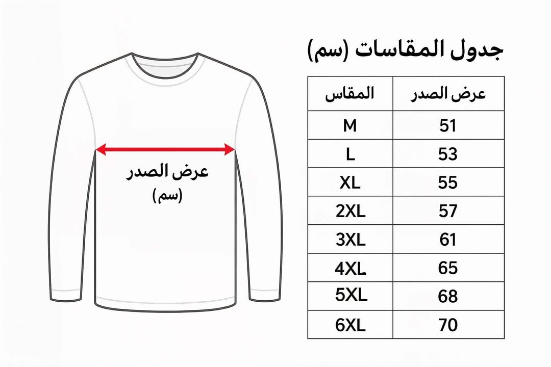 جدول مقاسات الأندر شيرت